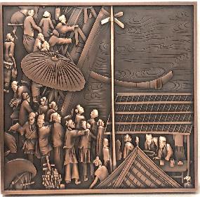 材質(zhì):H62銅,厚度10—15mm尺寸:客戶實際尺寸定制制作工藝:整板雕刻;銅花配件:銅花開模鑄壓成 ..